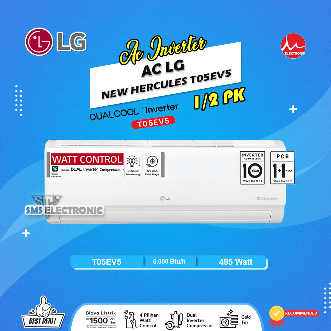 AC LG Wall Mounted Split Smart Inverter DUALCOOL Watt Control 2023 1/2 PK – T05EV5 – unit only
