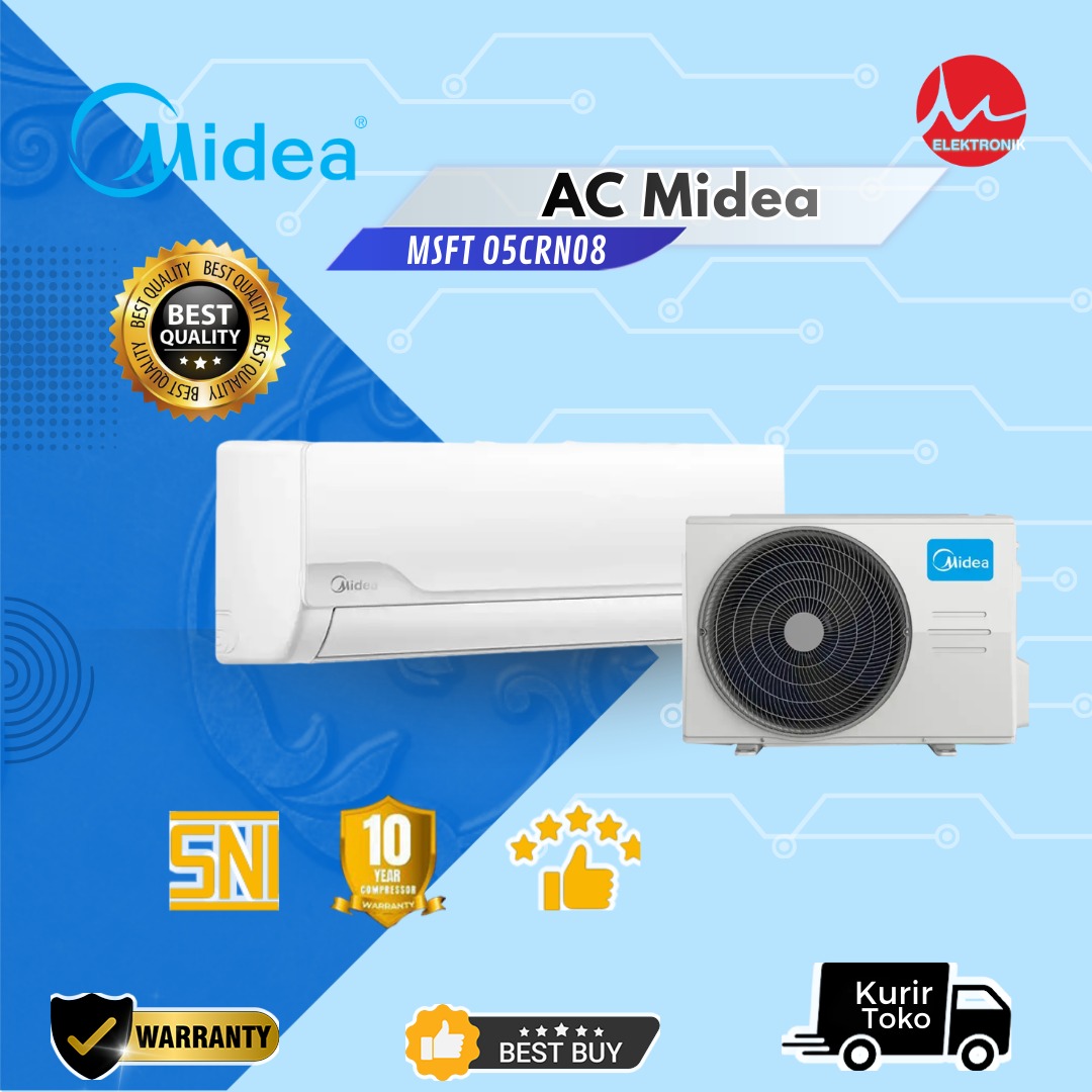 Tipe MSFC/MSFCE telah discontinue, diganti menjadi tipe terbaru yaitu seri MSFT. AC Midea 0.5 PK Standard R32 Golden Coating – MSFT-05CRN8 adalah unit wall-mounted split yang cocok untuk ruangan kecil (sekitar 9–12 m²) dengan fokus pada ketahanan korosi, kualitas udara yang lebih bersih, dan pendinginan cepat berkat teknologi pelapisan serta turbo mode.