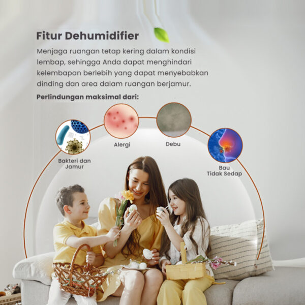 Fitur Dehumidifier: Menjaga ruangan tetap kering dalam kondisi lembap, mengurangi pertumbuhan jamur dan bau tak sedap.