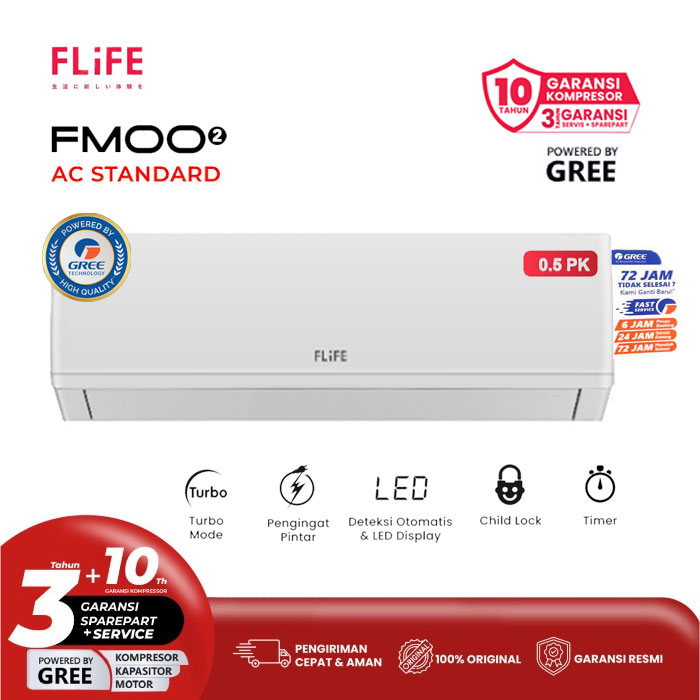 FLIFE AC 1,5 PK Standard – Turbo Mode – LED Display – Smart Cleaner – Model FAC-12FMOO2 – UNIT ONLY