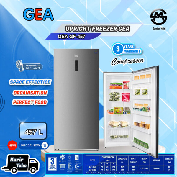 Gea Upright Freezer GF 457 / GF457 Freezer Berdiri 457 Liter NO FROST / TANPA BUNGA ES, INVERTER
