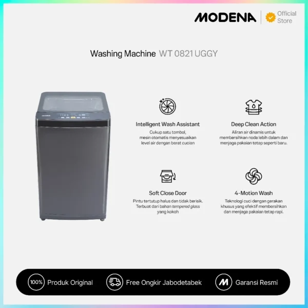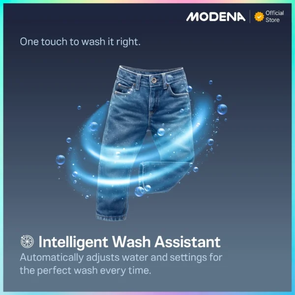 Cukup dengan menekan satu tombol, mesin cuci akan mendeteksi berat cucian, level air yang dibutuhkan, dan tingkat cucian.