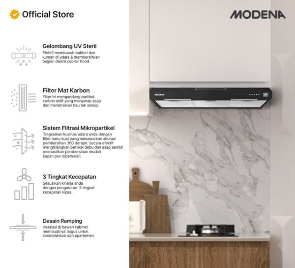 Purifier Slim Hood Hybrid MODENA AX 2711 CABK 70cm UV Sterilwave