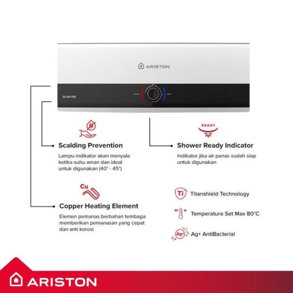• Titanshield Technology – Lapisan anti-korosi pada tangki untuk memperpanjang usia pakai pemanas air.
